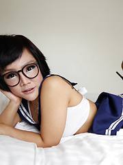 Cute Thai ladyboy Bird plays with her yummy hard cock until shooting her load