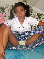 Petite ladyboy stripping from her school uniform and spreading