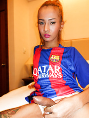 Stunning dome Thai ladyboy jerks off